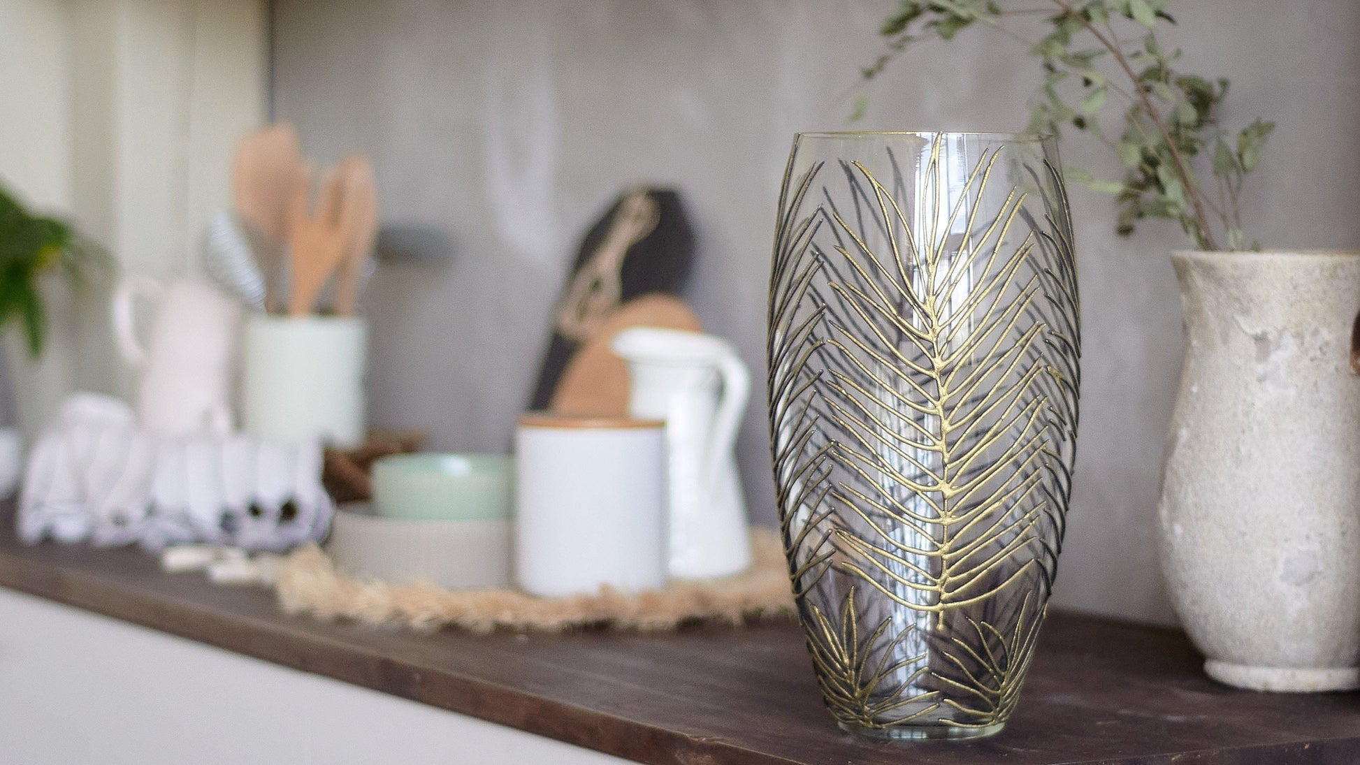 Handpainted Glass Vase for Flowers | Art Tropical Oval Vase | Interior