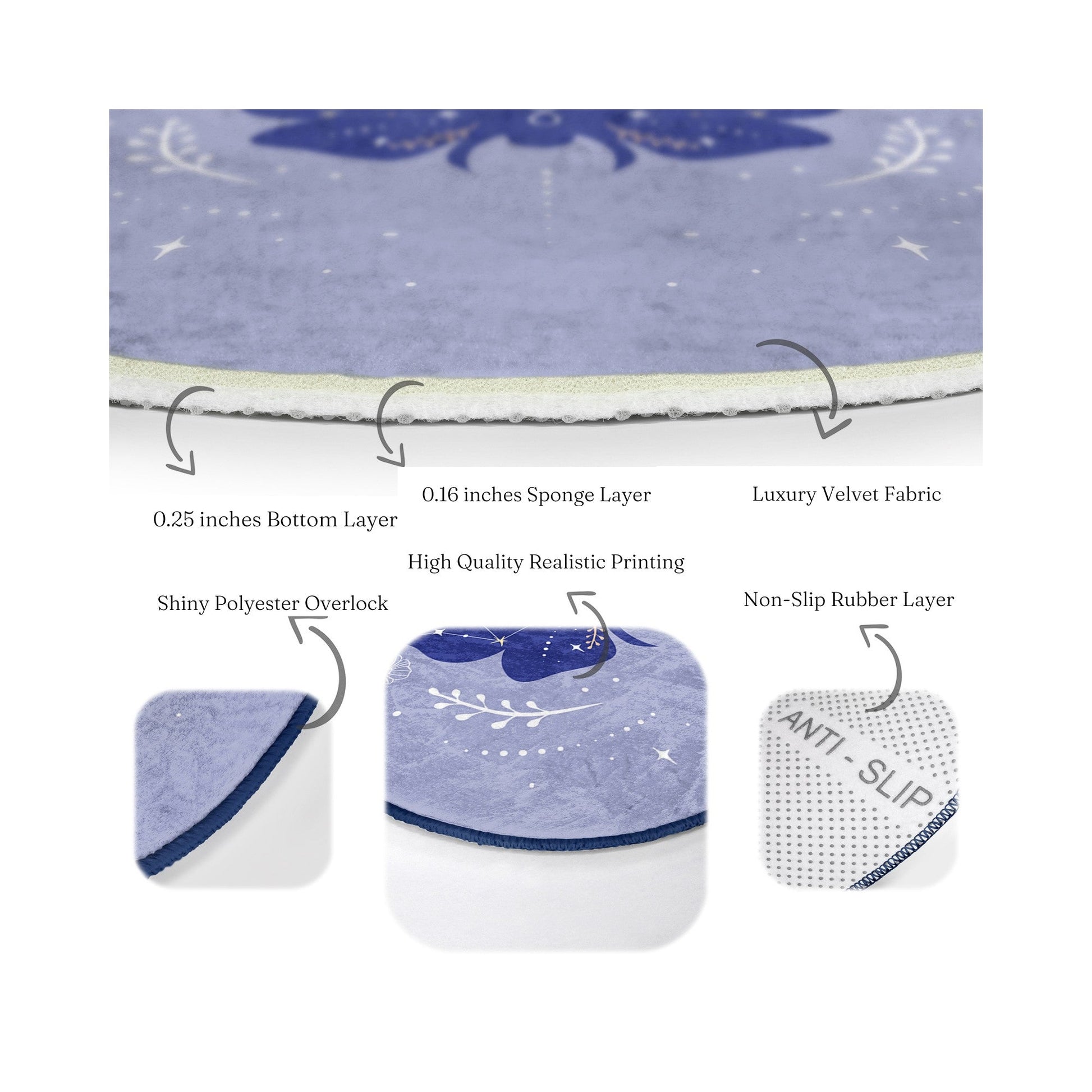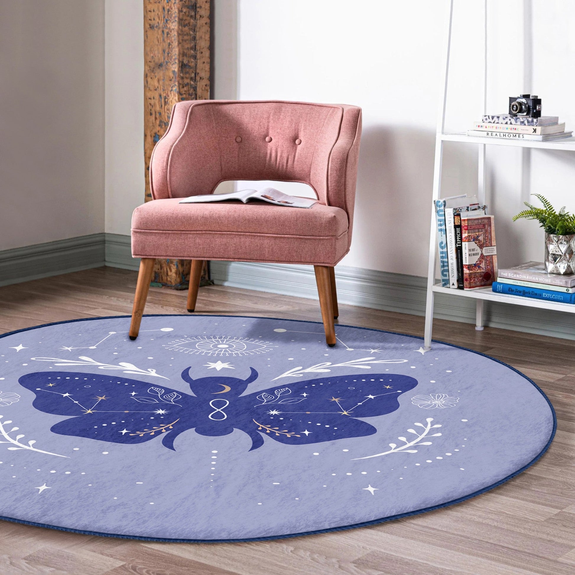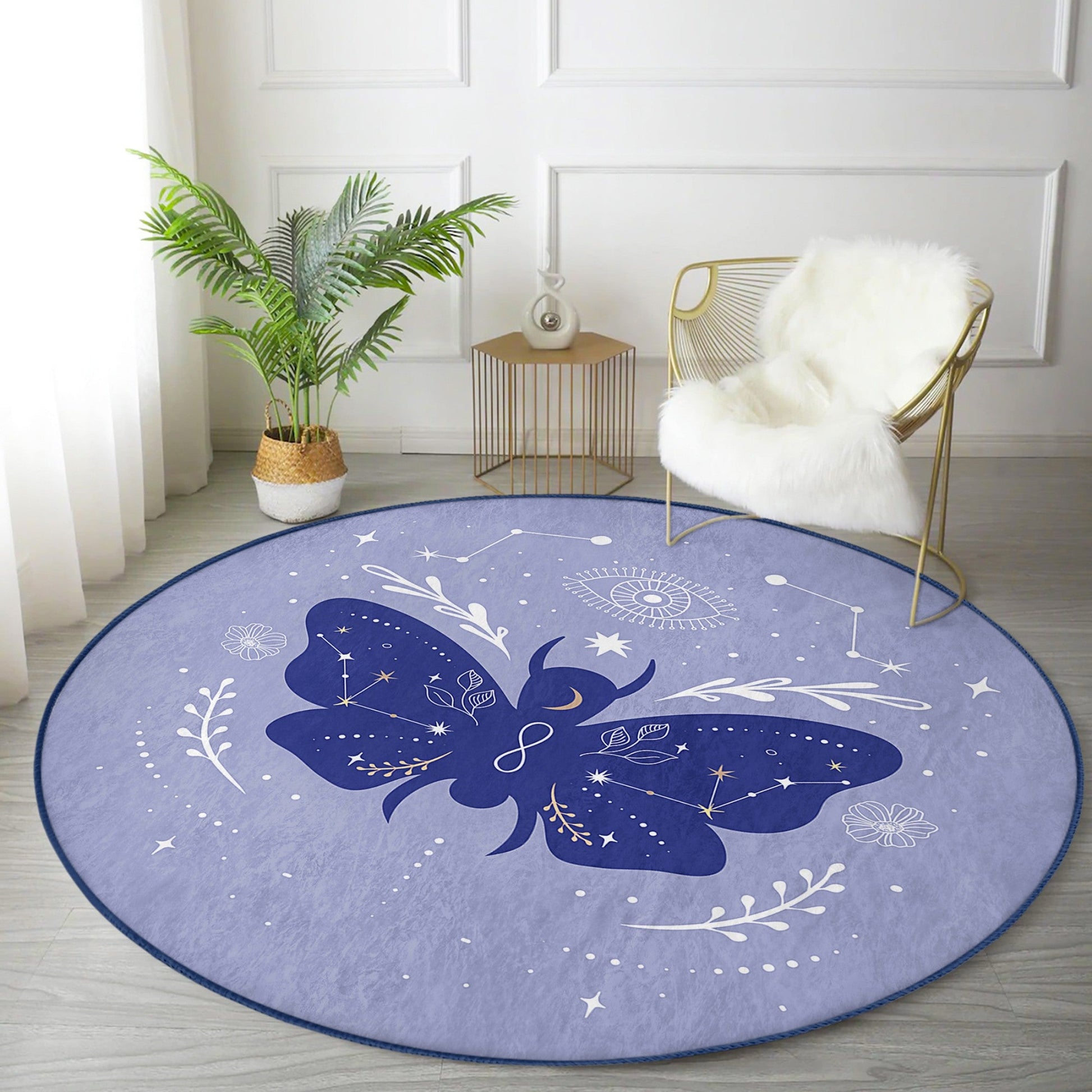 Purple Butterfly Pattern Boho Home Decor Washable Round Rug |